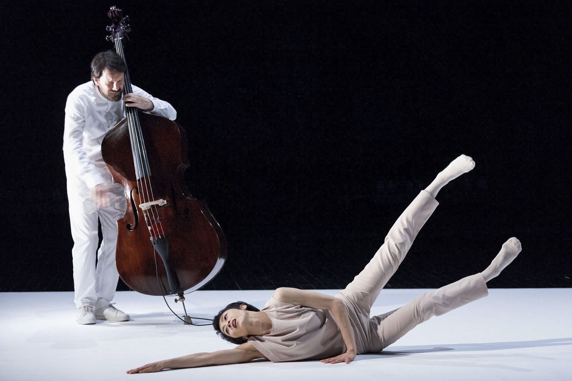 'Double Bach' es un proyecto de colaboración entre el músico Pablo Martín Caminero, del que surge la original idea de adaptar las suites para violoncelo nº 1 y 2 de J. S. Bach al contrabajo, acoplando tanto la tonalidad como la técnica (pizzicato en lugar de arco) y el coreógrafo Antonio Ruz. Con la poderosa danza de la aclamada bailarina Tamako Akiyama, la obra "propone un espacio interior e íntimo en el que los intérpretes comparten y dialogan desde un estado de no-pensamiento y de vacío; una soledad acompañada, un desierto-océano, un lienzo en blanco donde la música, el movimiento y la luz (o su ausencia) evocan fragilidad, profundidad y desequilibrio. El retorno a la sencillez". Tamako Akiyama (Asahikawa, Japón), comenzó sus estudios de ballet con el Uchiyama Ballet Studio. En 1985 continuó sus estudios en la Academie de Danse Classique Princesse Grace de Monaco con Marika Besobrasova como directora. En 1986 ganó el segundo premio Johnson Scholarship en el Prix de Lausanne y dos años más tarde The Junior Fourth Prize at the International Ballet Competition en Varna, Bulgaria. En 1999 entró a formar parte de la Compañía Nacional de Danza en Madrid bajo la dirección de Nacho Duato y un año más tarde se convirtió en la bailarina principal. En la Compañía Nacional de Danza ha participado como bailarina en muchas creaciones de Nacho Duato bailando casi todas sus creaciones, así como también creaciones de los más importantes coreógrafos, como Jiri Kylián, Mats Ek, William Forsythe, y Ohad Naharin and Wim Vandekeybus. Por su parte Pablo Martín Caminero terminó sus estudios de contrabajo clásico en la Escuela Superior de Música de Viena en el año 1999. Tras esta etapa formativa, se trasladó a Madrid, donde inició su carrera profesional como intérprete, compositor y productor. La diversidad de estilos musicales en los que se mueve, lo ha llevado a colaborar con artistas y proyectos de diversos géneros como Ultra High Flamenco, Abe Rábade Trío, Jorge Pardo, Gerardo Núñez, bandArt, Hippocampus, Chano Domínguez, Niño Josele, Rocío Molina, Enrike Solinís, Rosario 'Tremendita', y un largo etcétera de proyectos de flamenco, jazz, clásico y barroco.