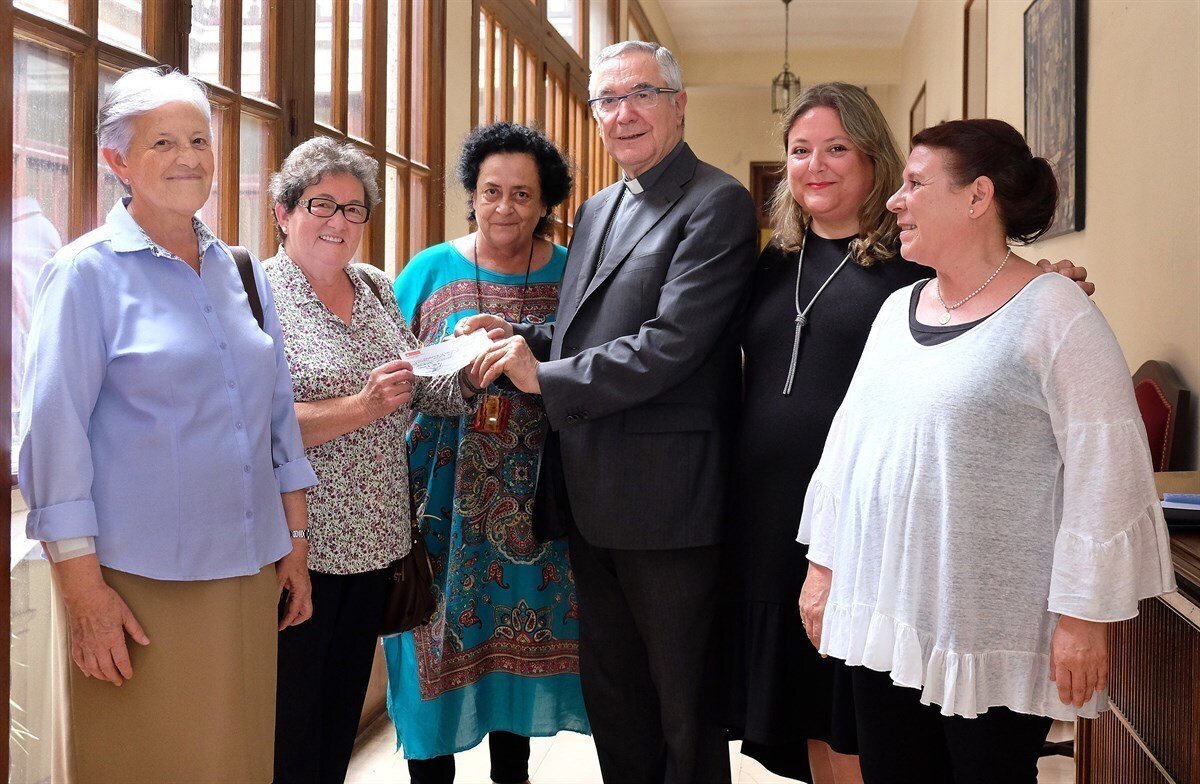 Al acto de entrega de la recaudación, presidido por la concejala de Dinamización Social, Lorena Gutiérrez, acudieron también el obispo de Santander, Manuel Sánchez Monge; la presidenta y vocal de la Junta de Cofradías, Teresa Saro, y Gema Soldevilla, respectivamente; y representantes del Hogar Belén.