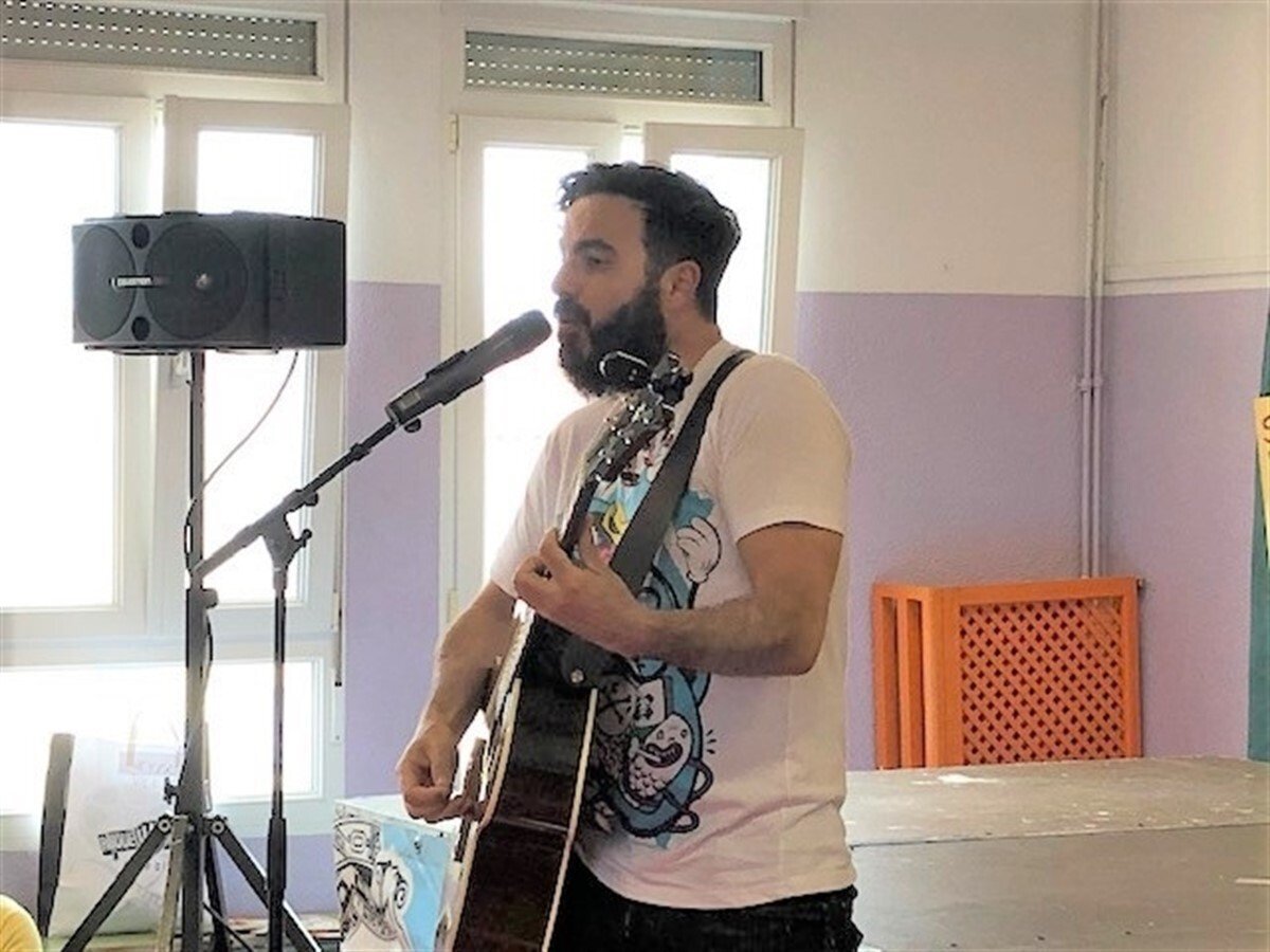 También ha interpretado con ellos algunos de sus temas como 'Abuelo', 'Mirando al cielo' o 'Dame vida', la canción que ha servido a los alumnos de este colegio para su vídeo musical, y les ha hablado de otras como 'Se acabaron las lágrimas', que habla del problema de los malos tratos a las mujeres.