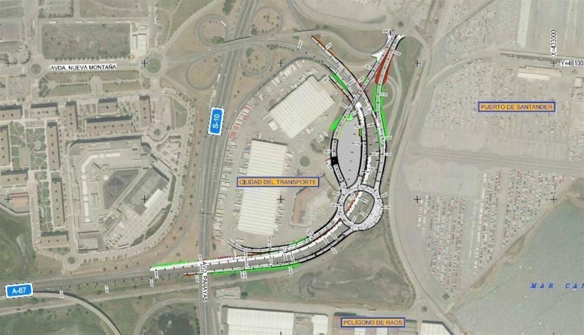 El proyecto incluye una glorieta elevada sobre la A-67 que distribuye el tráfico entre el Puerto de Santander, CITRASA y la propia A-67. Se ha reservado el máximo espacio diáfano posible bajo la misma para facilitar la circulación de los vehículos pesados en los viales internos de la Ciudad del Transporte de Santander.