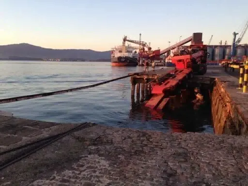 El remolque de un transporte especial así como su carga - desconocida pero bastante pesada - han provocado el hundimiento del uno de los muelles más veteranos del puerto de Raos en el amanecer de hoy. Sin tener que lamentar heridos se salda una situación inusual y peligrosa en los muelles santanderinos.