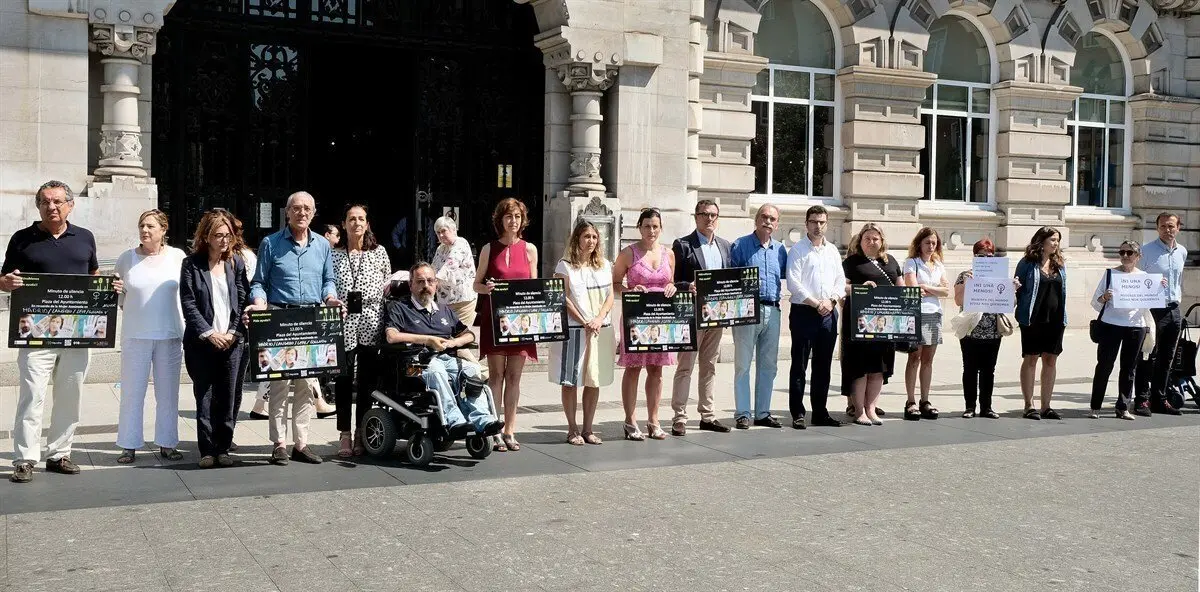 Representantes municipales y vecinos de Santander se han concentrado este lunes en la plaza del Ayuntamiento para mostrar su consternación y repulsa por los cuatro asesinatos machistas ocurridos en España desde el pasado jueves.