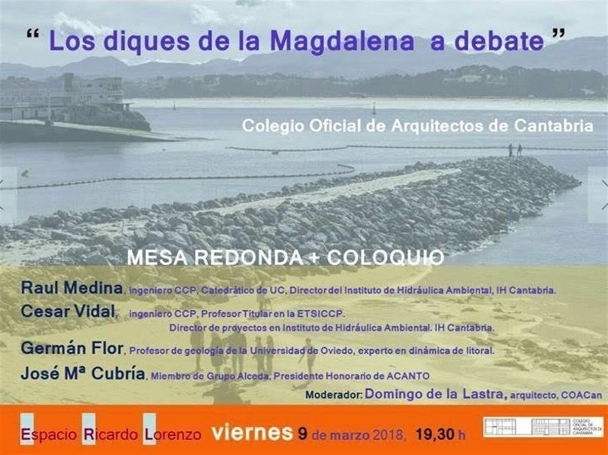El Espacio Ricardo Lorenzo de Santander, sede cultural del Colegio Oficial de Arquitectos de Cantabria (COACAN), acogerá este viernes, 9 de marzo, a partir de las 19.30 horas, un debate sobre los diques que está ejecutando el Ministerio de Medio Ambiente en las playas de La Magdalena y Los Peligros.