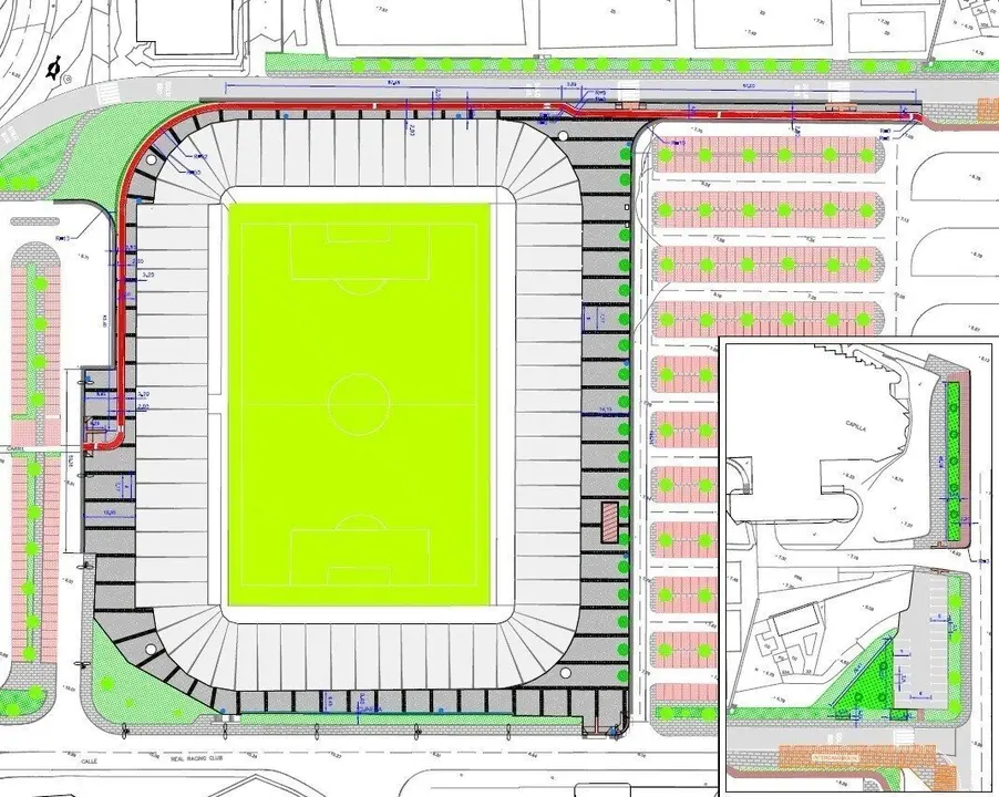 Además, se hará "un guiño" al Racing colocando en el pavimento cenefas formadas por losas multicolores de 40x40x6 centímetros de color blanco y verde.