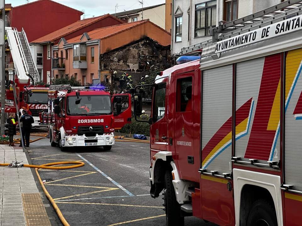 La explosión registrada esta madrugada en un edificio de La Albericia, en Santander, se ha saldado con el derrumbe de un inmueble, el incendio de otro -que ha quedado calcinado- y, además, los vecinos de tres colindantes han sido desalojados.
