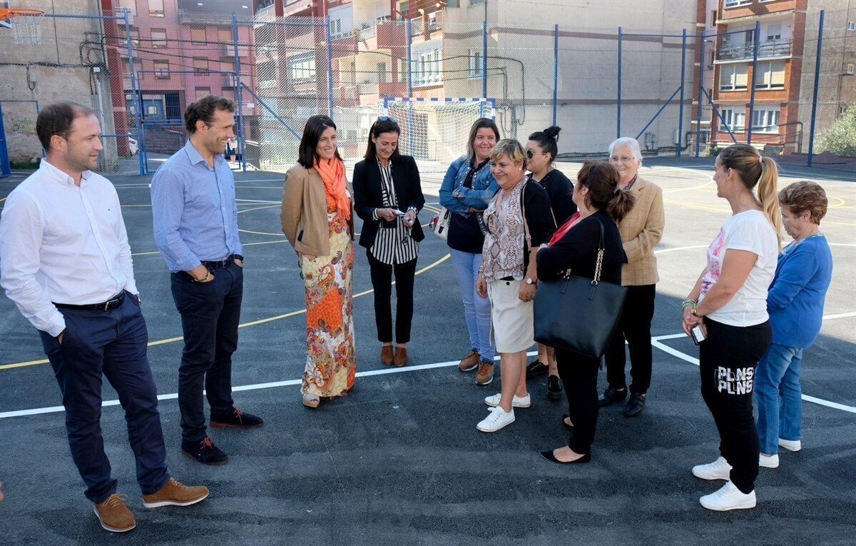 La alcaldesa de Santander, Gema Igual, ha visitado la pista deportiva de San Pancracio, ubicada en la Bajada de la Calzada, tras ser renovada.