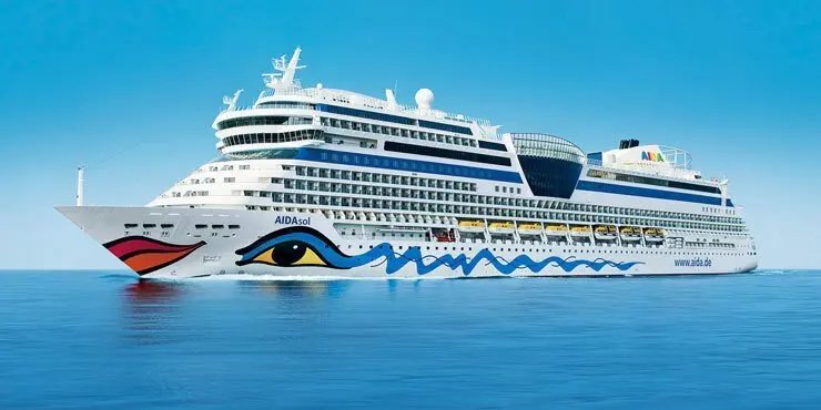 El buque AidaSol, de la naviera Aida Cruises, mide 252 metros de eslora, tienen una manga de 32,2, un calado de 7,3 metros, una capacidad para más de 2.500 pasajeros y dispone de más de mil camarotes.