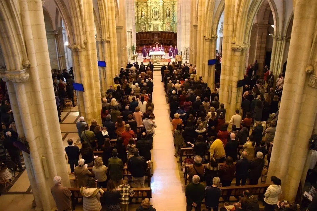 Más de 600 personas asistieron este domingo en la Catedral de Santander a la eucaristía presidida este domingo por el obispo de Santander, Manuel Sánchez Monge, con motivo del tricentenario de la muerte de San Juan Bautista de La Salle