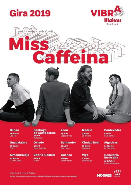 Las entradas para la gira de Miss Cafeína, que es la banda protagonista de la Gira Vibra Mahou 2019, ya están a la venta en Wegow.es y puntos habituales de venta.
