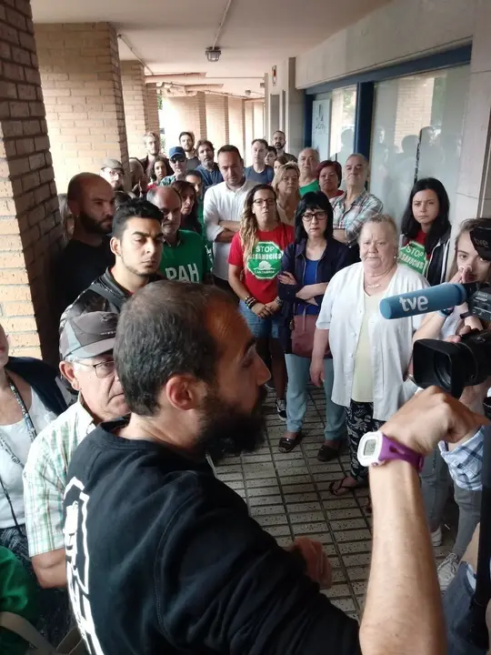 La Plataforma de Afectados por la Hipoteca (PAH) de Santander había convocado un acto antidesahucio en el portal de la vivienda para evitar que la pareja de autónomos fuera desalojada de su piso por no poder pagar su hipoteca.