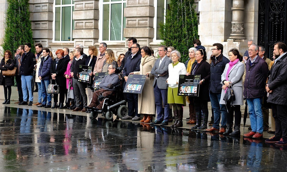 Miembros de la Corporación santanderina, trabajadores municipales y vecinos han guardado hoy un minuto de silencio en la plaza del Ayuntamiento para condenar los últimos asesinatos machistas ocurridos en nuestro país.