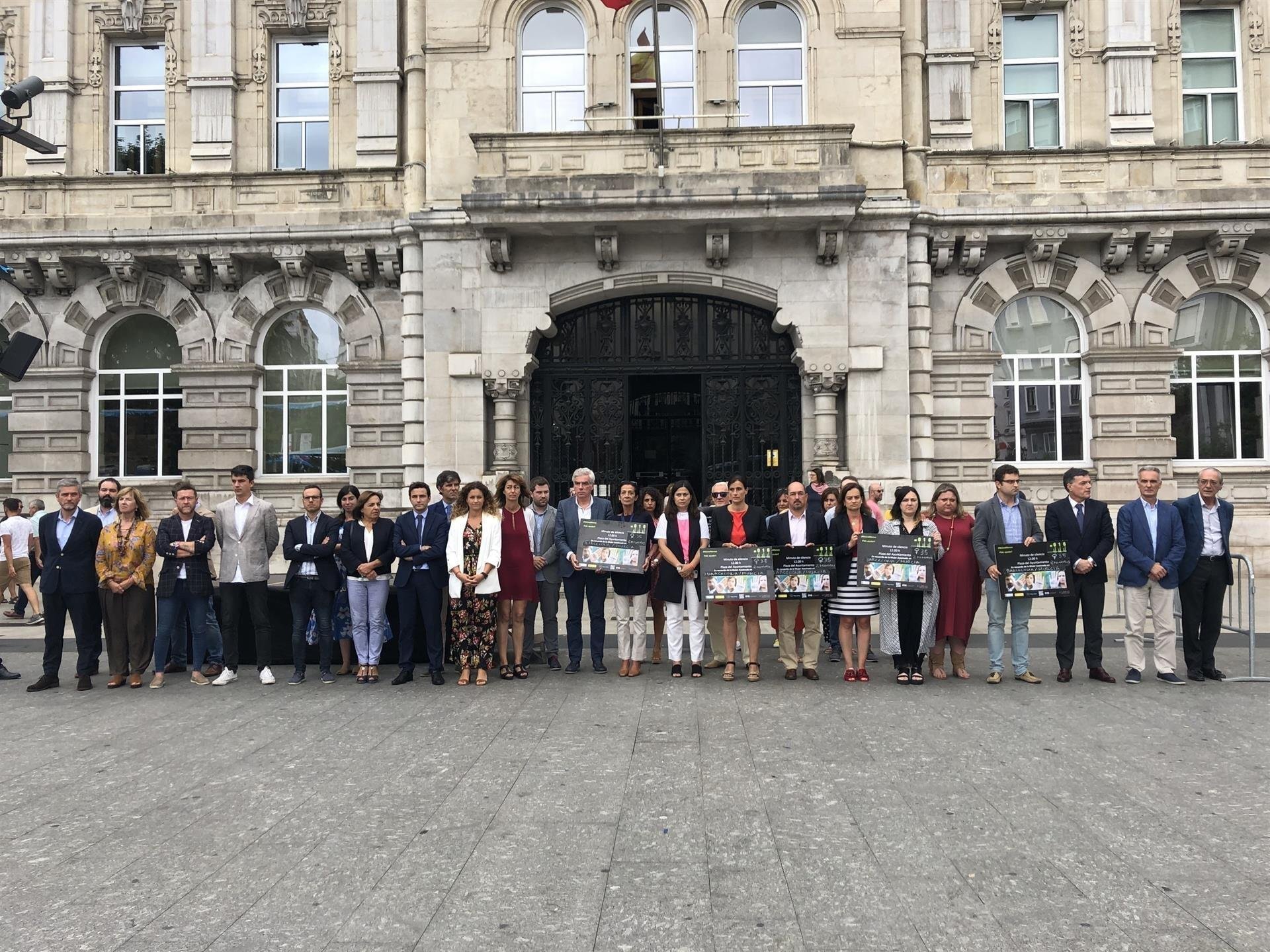 La plaza del Ayuntamiento de Santander ha acogido este mediodía un minuto de silencio en el que han participado miembros de la Corporación municipal, trabajadores y ciudadanos para condenar los asesinatos de una mujer en Barcelona y de un menor de 11 años por violencia de género.