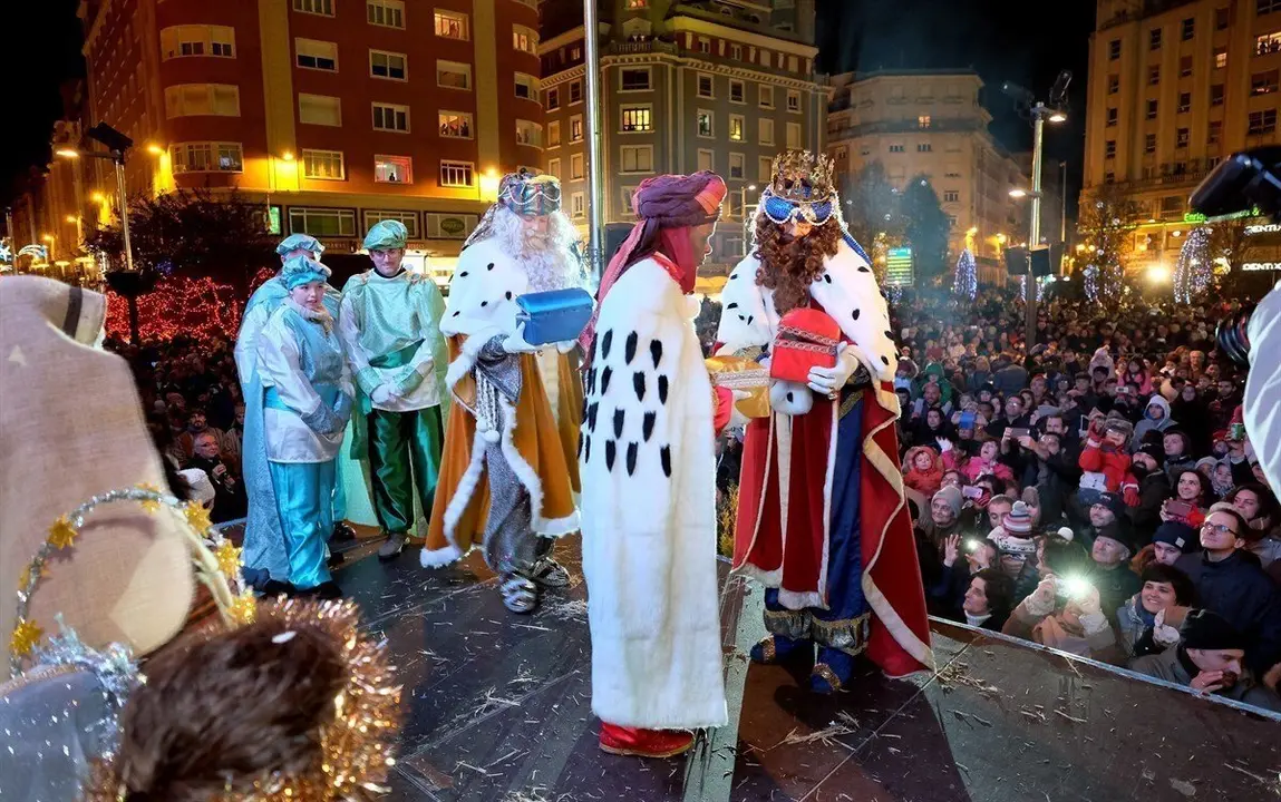 La comitiva partirá de Gamazo a las 19.00 horas y, tras recorrer Castelar, Puertochico, el Paseo de Pereda, y Calvo Sotelo, llegará a la plaza del Ayuntamiento, donde Melchor, Gaspar y Baltasar harán la tradicional ofrenda de oro, incienso y mirra al Belén viviente que estará ubicado en la entrada de la Casa Consistorial, antes de subir al balcón, desde el que se dirigirán a todos los presentes en la plaza.