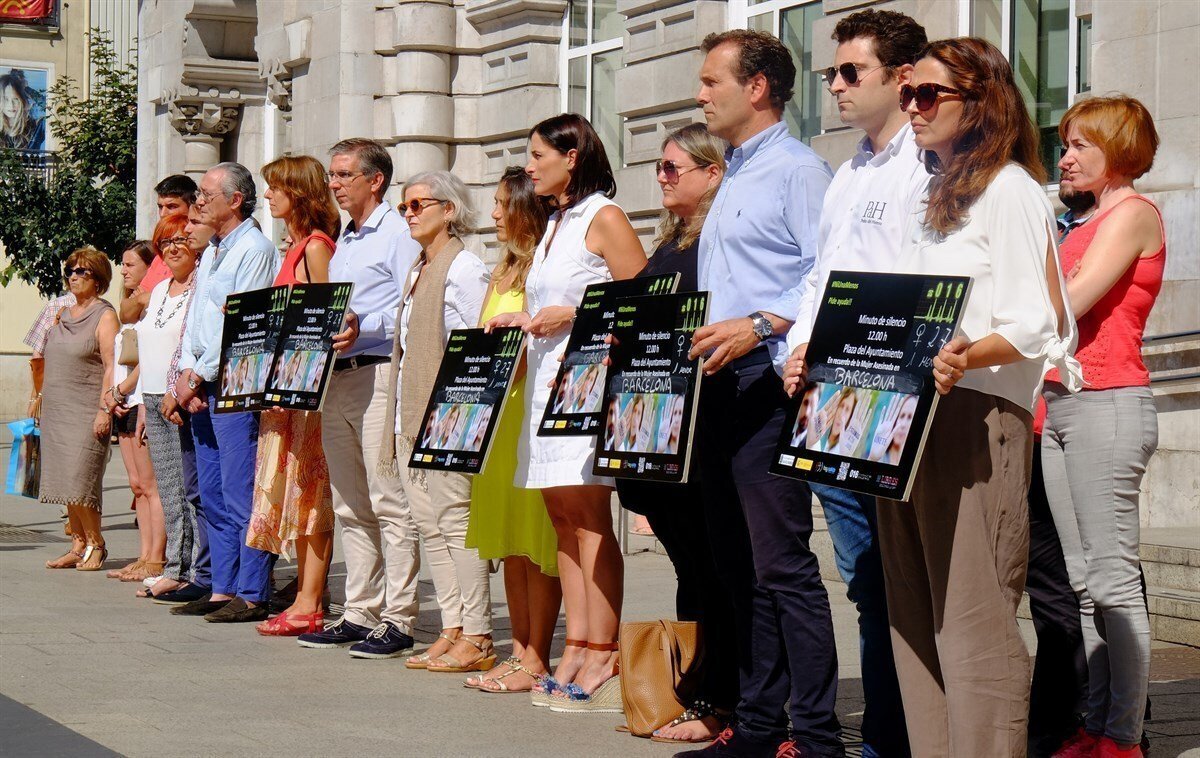 Miembros de la Corporación santanderina, trabajadores y ciudadanos se han concentrado este lunes en la plaza del Ayuntamiento para mostrar su repulsa por los últimos crímenes machistas y para reclamar unidad y firmeza frente a la violencia de género.