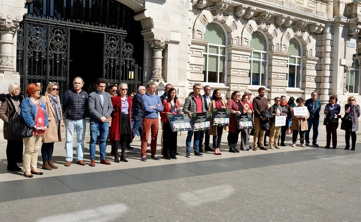 Miembros de la Corporación santanderina, trabajadores y ciudadanos se han concentrado este miércoles para recordar a la mujer asesinada el lunes en Loeches (Madrid) y para mostrar una vez más su rechazo a la violencia de género.