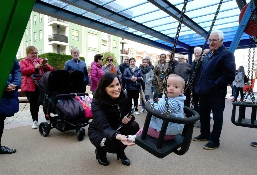La alcaldesa de Santander, Gema Igual, acompañada de la concejala de Barrios, Carmen Ruiz, y vecinos de la zona, ha inaugurado esta cubierta, de 166 metros cuadrados, con la que se cubre una parte del parque.
