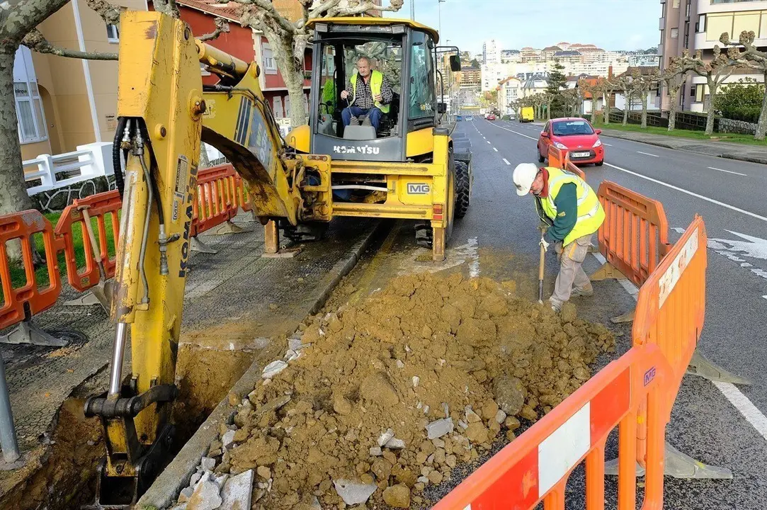 Ahora, los trabajos se han trasladado a la avenida de Pontejos, donde se van a sustituir unos 40 metros de colector en el cruce con la avenida de Los Castros para mejorar el trazado y facilitar una conexión directa entre los dos ramales principales.