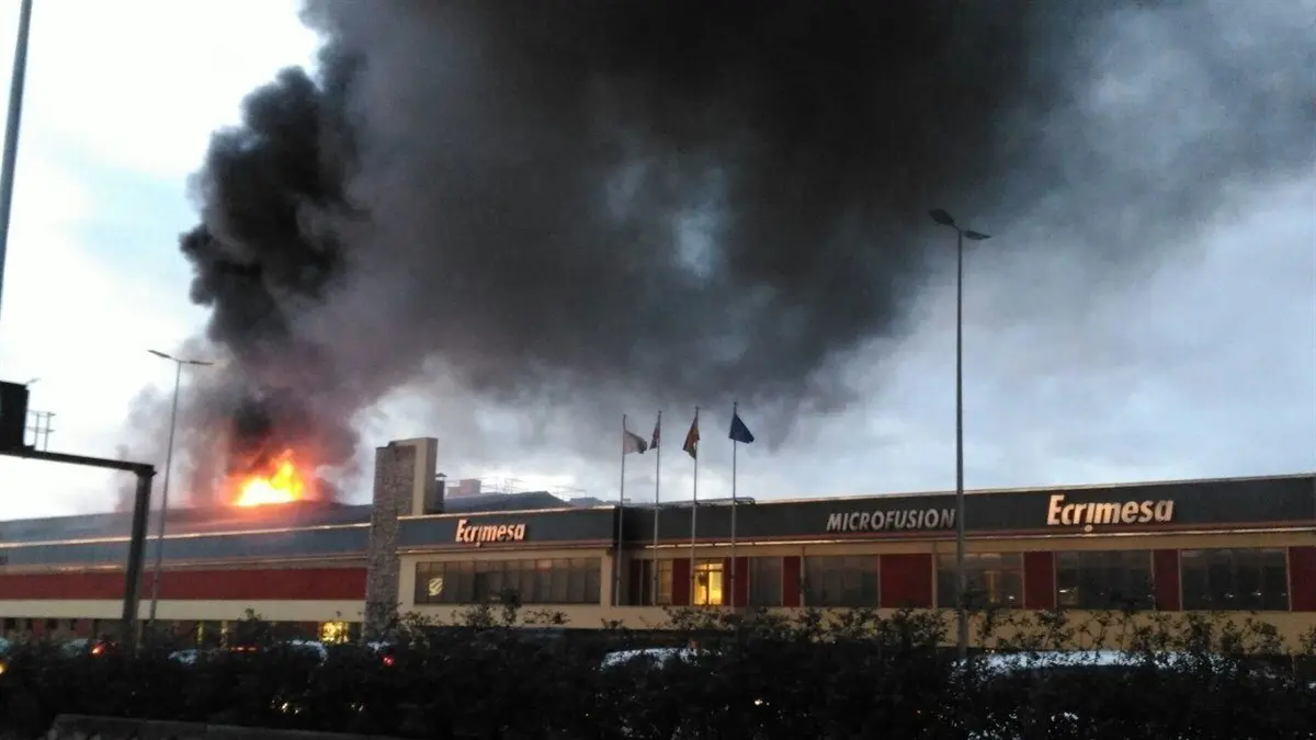 El foco del incendio estaba localizado en el tejado de la fábrica y podría haberse producido debido a una pequeña explosión en la factoría, dedicada a las piezas de acero.