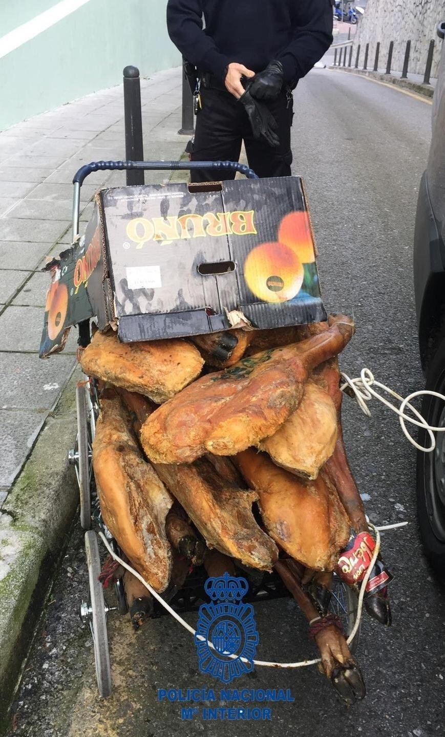 La Jefatura Superior de Policía está tratando de averiguar la procedencia de los jamones para poder devolvérselos a su propietario legal.