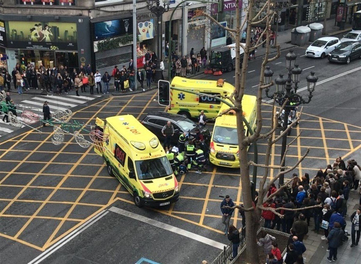 Tres personas han resultado heridas este sábado en el centro de Santander en una colisión entre una ambulancia que acudía a una urgencia y un coche.