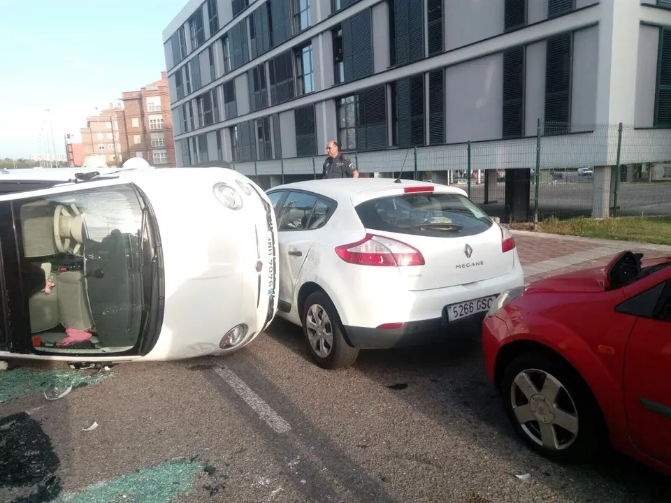 Tres coches han protagonizado este miércoles un accidente en la calle Las Cagigas 4 de Santander, en el que no ha habido ningún herido de gravedad. Aunque se desconocen las causas de la colisión, uno de los vehículos ha volcado y ha impactado contra los otros dos.