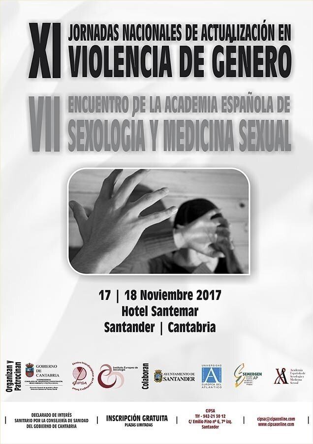 Unos 300 expertos en violencia de género y salud sexual compartirán datos y experiencias este viernes y sábado, 17 y 18 de noviembre, en Santander, en las XI Jornadas Nacionales de Actualización en Violencia de Género y VII Encuentro de la Academia Española de Sexología y Medicina Sexual, organizadas por Centro Interdisciplinar de Psicología y Salud (CIPSA) y el Gobierno de Cantabria.