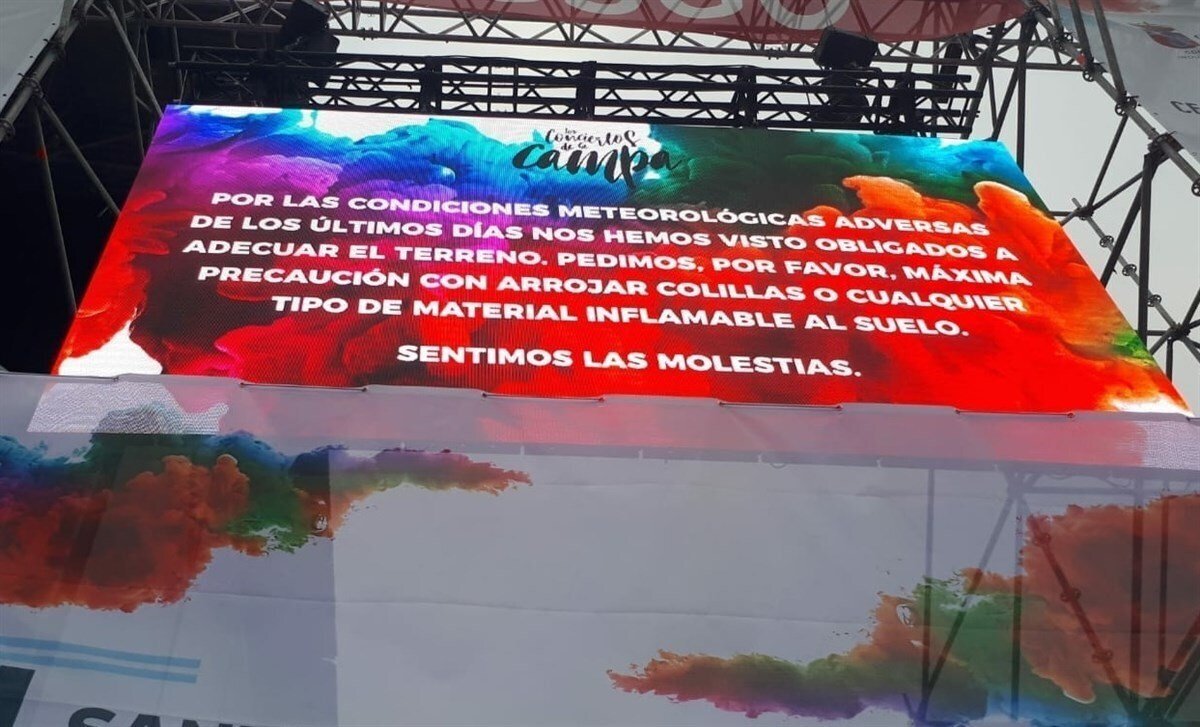Así, según ha informado en rueda de prensa, antes del concierto de The Jacksons, en una pantalla se advertía textualmente que "por las condiciones meteorológicas adversas de los últimos días nos hemos visto obligados a adecuar el terreno. Pedimos por favor máxima precaución con arrojar colillas o cualquier tipo de material inflamable al suelo".