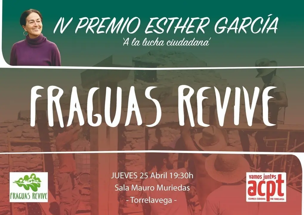 Asamblea Ciudadana por Torrelavega (ACpT) ha otorgado el IV Premio Esther García a la lucha ciudadana al colectivo 'Fraguas Revive', elegido por unanimidad frente a otros dos candidatos por la "novedosa propuesta" que el grupo de activistas está desarrollando en un pueblo abandonado de Guadalajara, así como por la "proactividad" de su lucha y el "profundo carácter constructivo" de su acción.