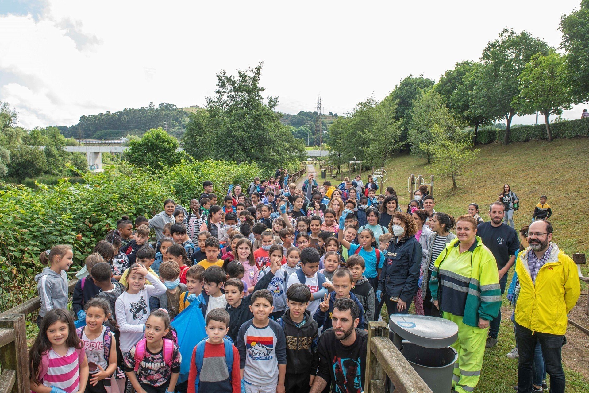 Los 195 alumnos del CEIP José María Pereda de Torrelavega, junto a profesores y familiares, han participado este miércoles en la recogida de 'basuraleza' en el entorno del colegio, en la ribera del río y en el 'Patatal'.
