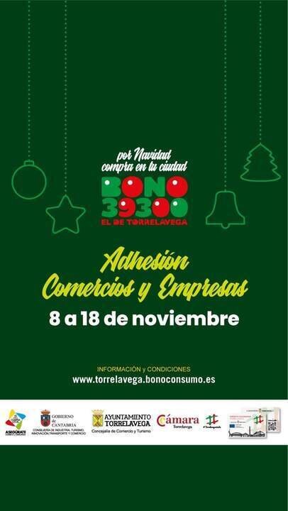 La 7ª edición de la campaña Bono 39300 de Torrelavega comienza este lunes 18 y se prolongará hasta el 5 de enero. Así, durante estas fechas se podrán canjear en los comercios y empresas adheridas a la iniciativa los 10.000 bonos adquiridos.