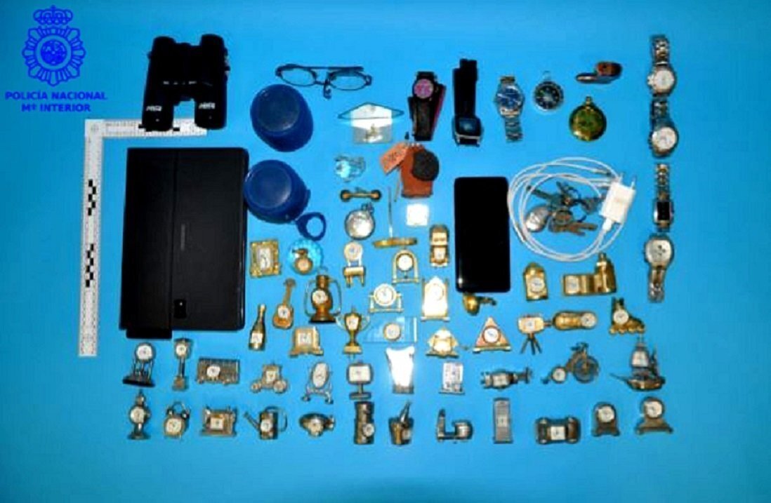 Entre los efectos que se le intervinieron, propiedad del agredido, había numerosos relojes, una tablet, unos altavoces, unas gafas graduadas, unos prismáticos y un juego de llaves.