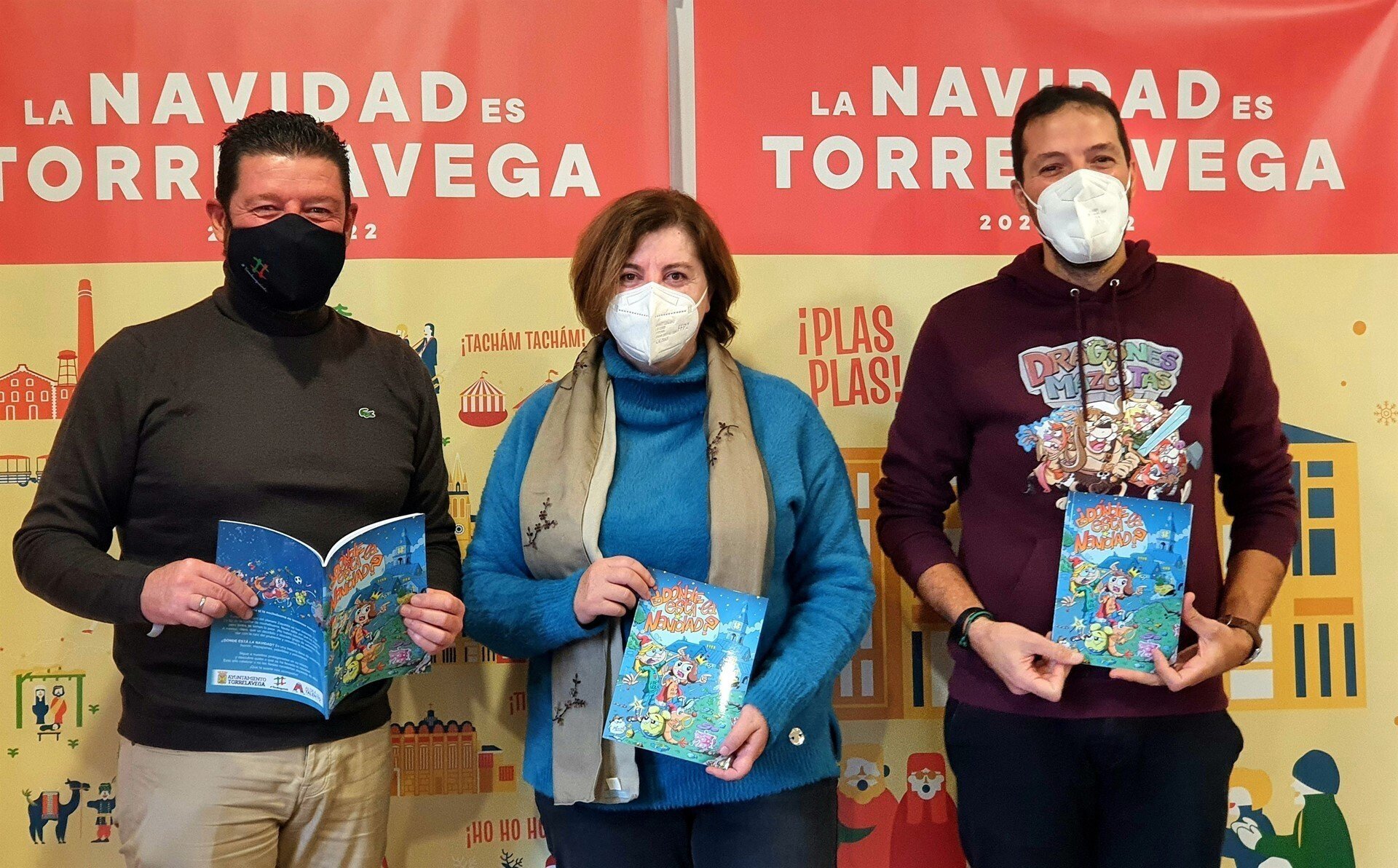 El concejal Jesús Sánchez, acompañado por Rosa Poo, de Aldea del Talento, y por el dibujante Rubén Martín, ha presentado este jueves en rueda de prensa una nueva edición de 'Los niños construyen la Navidad', que en esta ocasión ha tenido que adaptarse a las circunstancias de la pandemia.