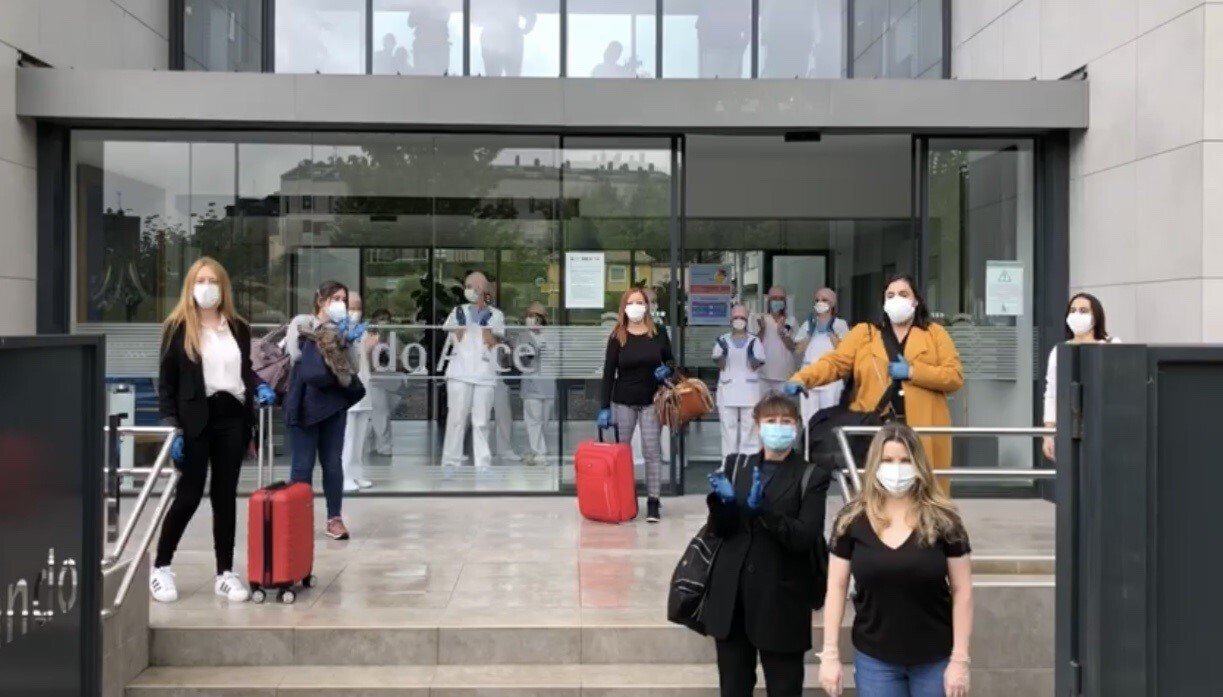 Las trabajadoras han salido con maletas y protegidas con mascarillas y guantes, y han sido recibidas entre aplausos, unos desde el exterior del recinto, los de las personas que les esperaban; y otros desde el interior, los del personal que se encontraba trabajando en el centro.