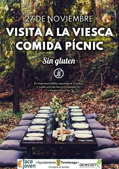 La Concejalía de Sanidad del Ayuntamiento de Torrelavega y la Asociación de Celiacos de Cantabria han organizado para este sábado, 27 de noviembre, una visita guiada por el parque de la Viesca especialmente dirigida a jóvenes, que finalizará con una comida tipo picnic de convivencia sin gluten para los asistentes.
