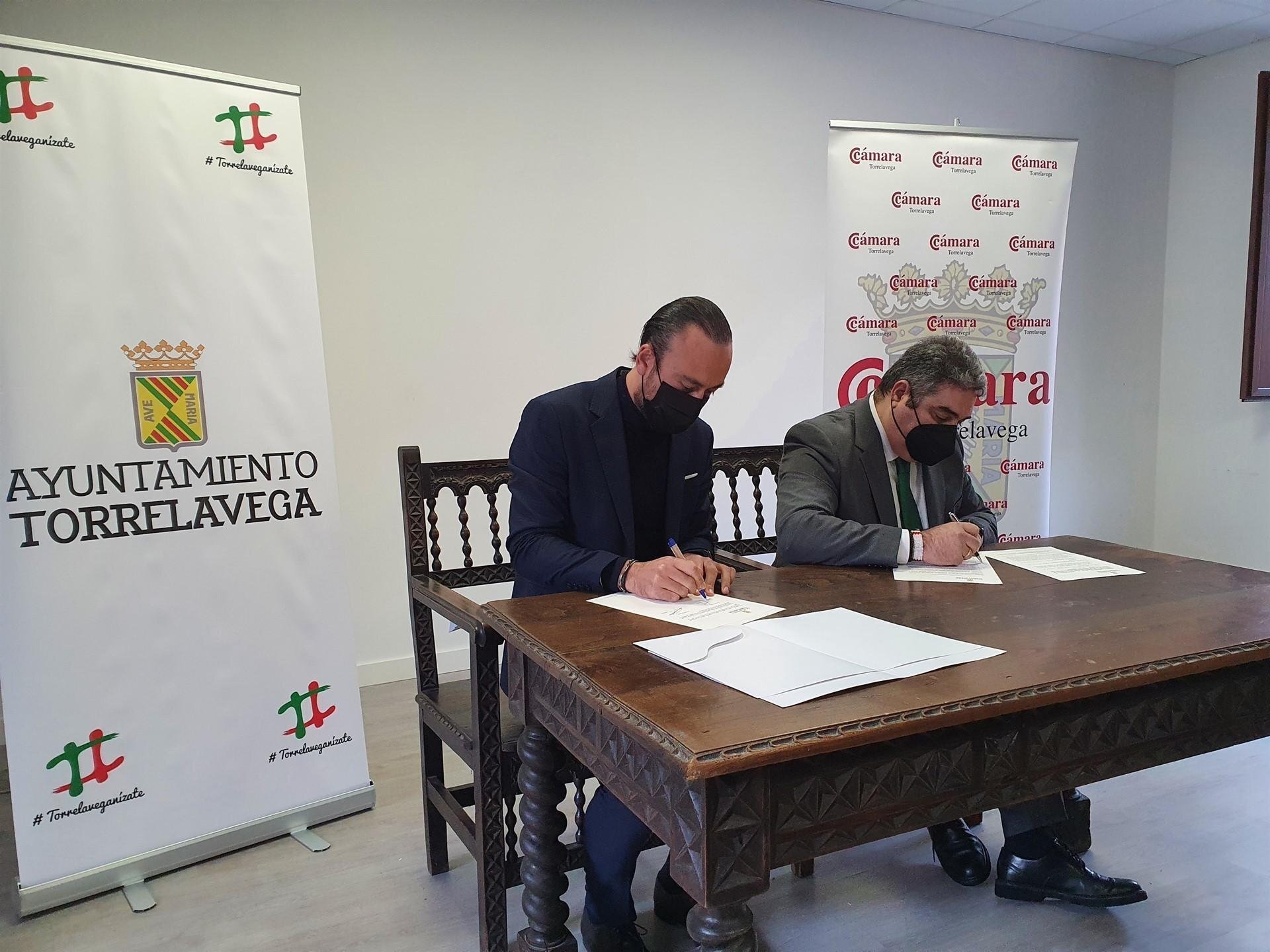 El alcalde de Torrelavega, Javier López Estrada; y el presidente de la Cámara de Comercio, José Luis Quintanilla, han firmado el convenio por el cual el Ayuntamiento adquiere la finca e inmueble de La Llama por 761.248 euros, cantidad fijada tras la valoración realizada por los técnicos municipales.