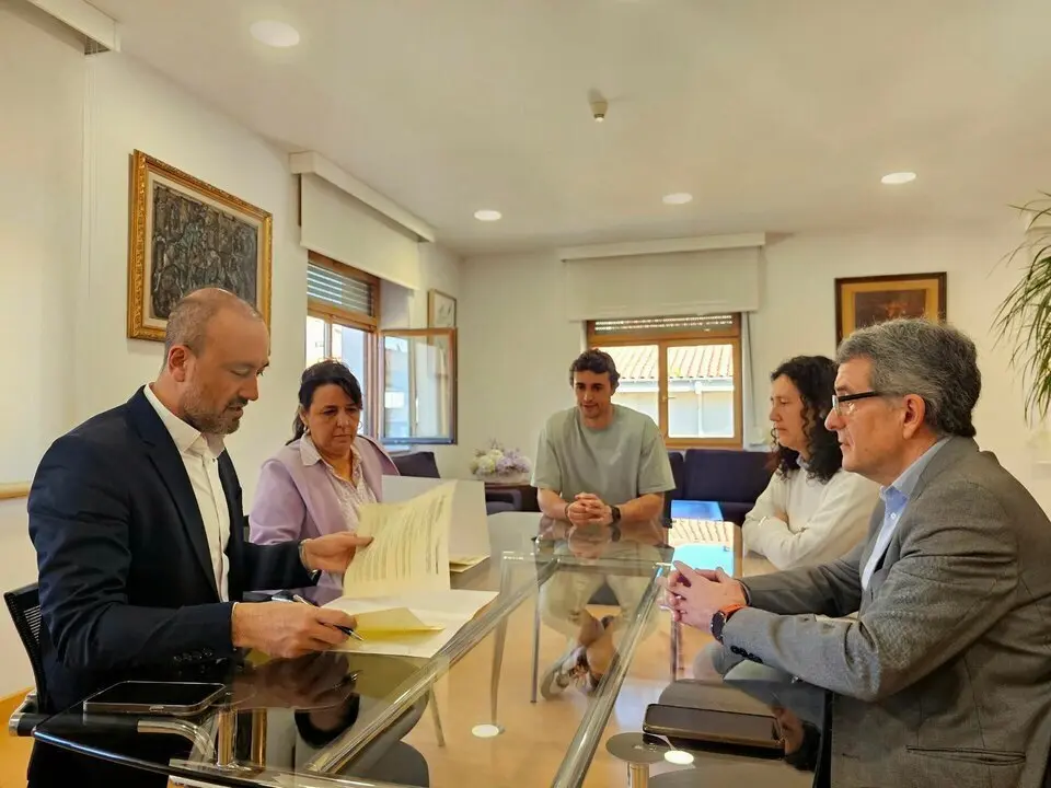 El alcalde, Javier López Estrada, y la directora del instituto, Dolores Vega, han firmado el acuerdo en un encuentro en el que han estado presentes los concejales de Hacienda, Pedro Pérez Noriega, y de Deportes y Juventud, Nacho González; así como la secretaria del IES Miguel Herrero, Nuria Celis.
