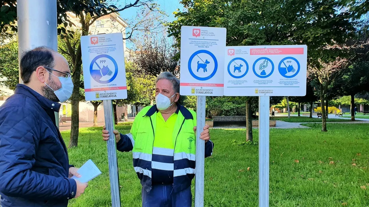 El Ayuntamiento de Torrelavega está instalando en las zonas verdes del municipio 95 señales que mostrarán las normas previstas en la ordenanza de bienestar animal y las posibles sanciones que conllevan algunos comportamientos.