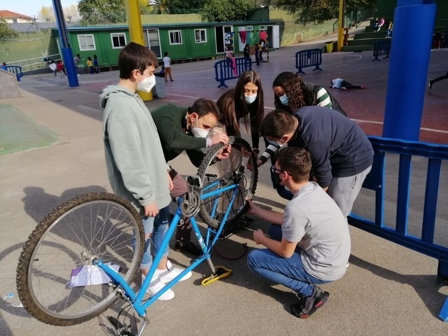 Uno de los aspectos más novedosos ha sido el taller de reparación de bicicletas desarrollado dentro del área de tecnología, en la unidad de 'Mecanismos y máquinas', contando para ello con 15 bicicletas, en diferentes estados de conservación, que el Ayuntamiento de Torrelavega ha cedido temporalmente al centro para su puesta a punto y uso por parte de aquellos alumnos que no dispongan de bici propia.