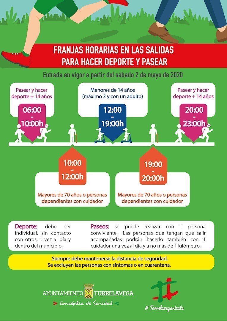 La Concejalía de Sanidad del Ayuntamiento de Torrelavega ha editado un cartel-resumen con las condiciones establecidas por el Ministerio para poder pasear o realizar deporte individual.