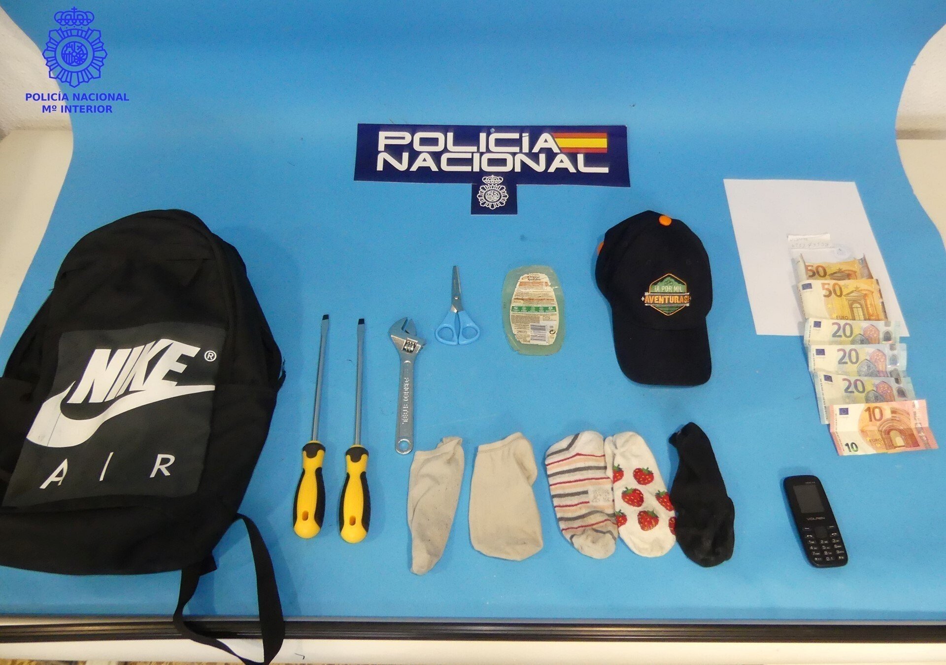 Los agentes consiguieron interceptarlas cuando abandonaban el inmueble, encontrando entre sus pertenencias una mochila negra, una llave inglesa, dos destornilladores, unas tijeras, un trozo de plástico duro, cinco calcetines, una gorra, un teléfono móvil y 170 euros.