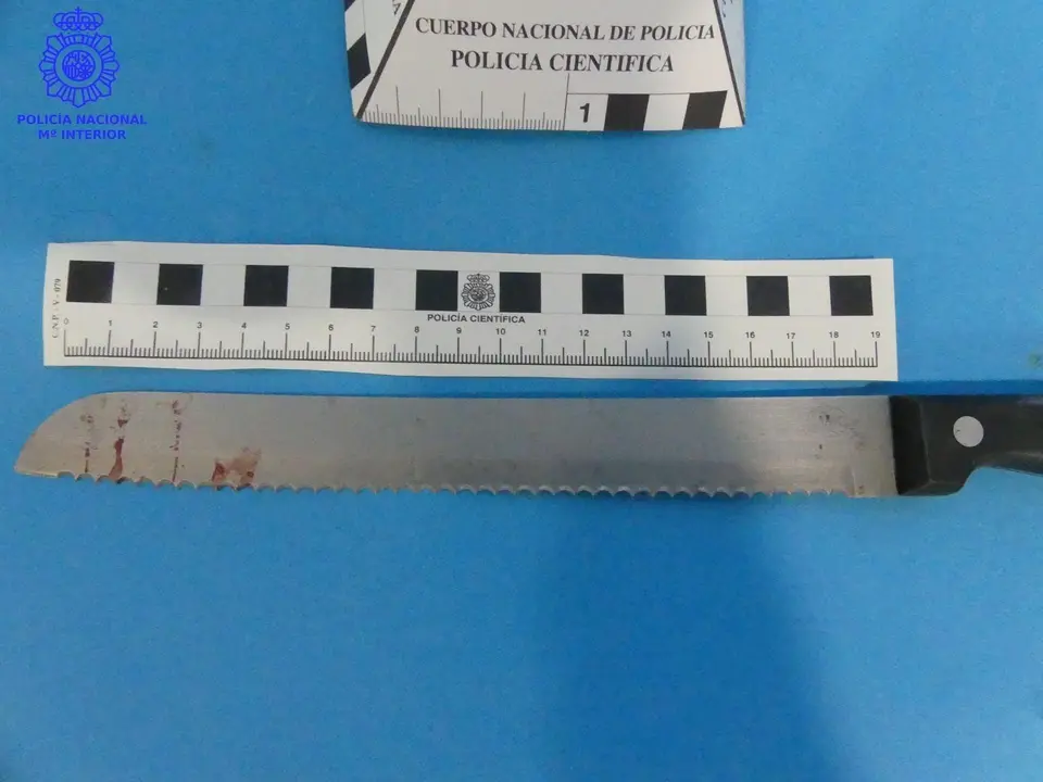 La víctima contó también a los agentes que el ladrón se había ocasionado una herida sangrante en la cabeza. Los policías encontraron en el local uno de los cuchillos utilizados en el robo, de 20 centímetros de hoja y con restos de sangre, debido a dicha herida.