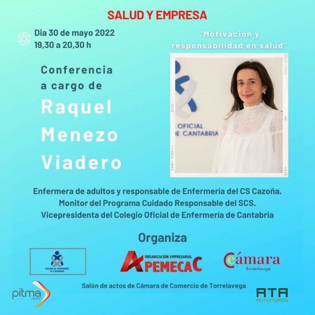 El ciclo 'Salud y empresa', organizado por APEMECAC junto al Colegio de Enfermería de Cantabria y la Cámara de Comercio de Torrelavega, terminará este lunes con la última jornada protagonizada por la enfermera Raquel Mena, que difundirá la importancia de estar motivados y de ser responsables con la salud.