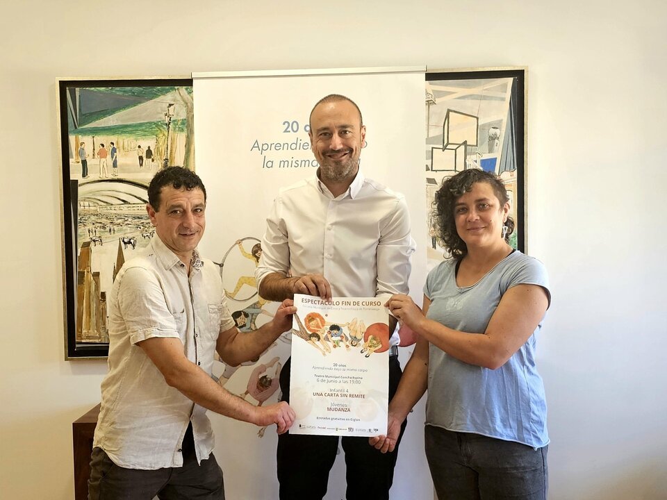 El alcalde de Torrelavega, Javier López Estrada, y los responsables de la Escuela de Circo, Javier Amigo y Elena Umlauff, han presentado los espectáculos de fin de curso este miércoles en rueda de prensa.