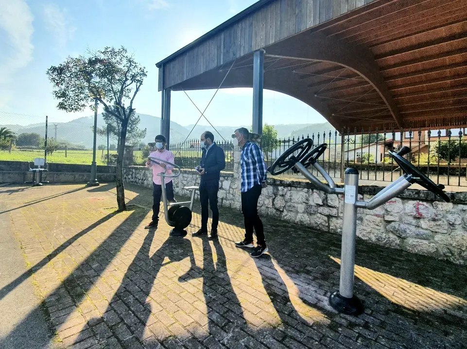 El concejal de Medio Ambiente, Parques y Jardines, José Luis Urraca, junto al alcalde pedáneo de Viérnoles, Eduardo Trueba, y el concejal Borja Sainz, ha visitado la nueva zona que cuenta con cinco aparatos de ejercicio: un esquí de fondo que se instalará próximamente, un extensor de piernas, una bicicleta estática, un aparato de volantes para ejercitar los brazos y un banco con pedales.