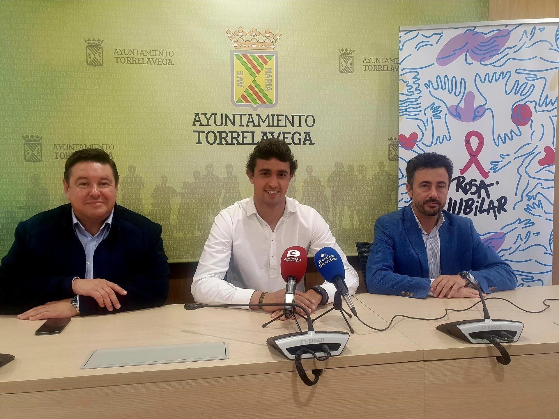 El concejal de Ferias y Mercados de Torrelavega, Nacho González, el director general de Cantur, Bernardo Colsa, y Manu Berrazueta, de la Asociación Rosa Navidad, han presentado una nueva edición de este evento solidario que, en esta ocasión y con motivo del Año Jubilar, han denominado 'Rosa Jubilar', y que se celebrará el 20 de mayo en el Mercado Nacional de Ganados.