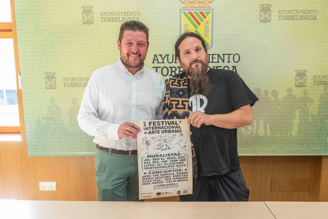 El concejal de Desarrollo Local, Jesús Sánchez, acompañado de Daniel Revenga, de Mens Rea, ha presentado este jueves el festival, que tiene "una extraordinaria programación, con arte urbano de calidad", como refleja la lista de muralistas y de conciertos.
