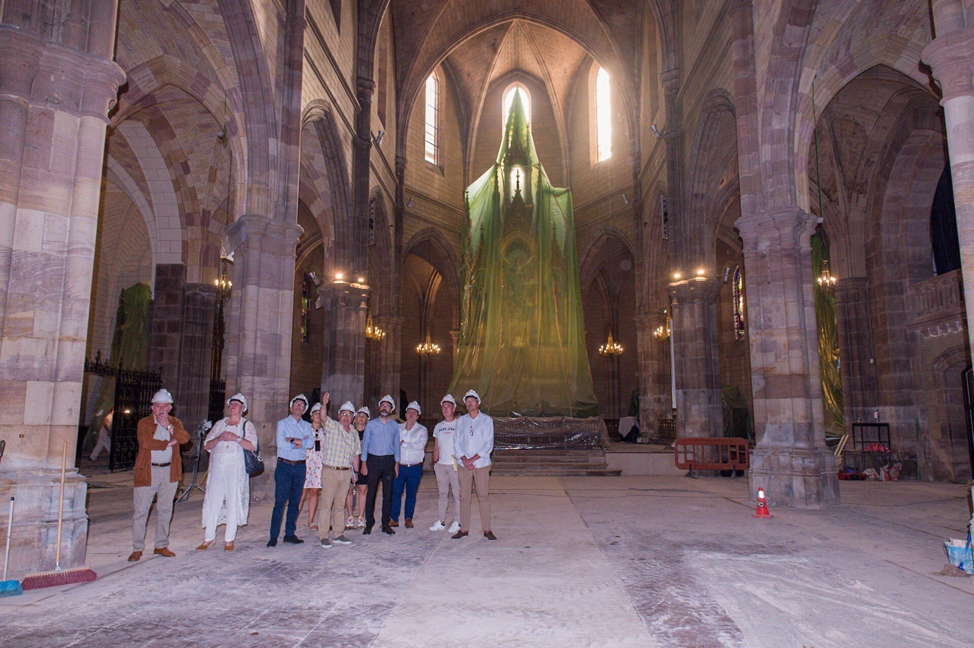 Representantes de la Corporación municipal han visitado este lunes la iglesia invitados por el párroco para ver los trabajos que se están realizando, en los que se han invertido más de 700.000 euros a falta de arreglar las vidrieras bajas del templo y el gran rosetón, cuyo presupuesto rondaría los 280.000 euros.