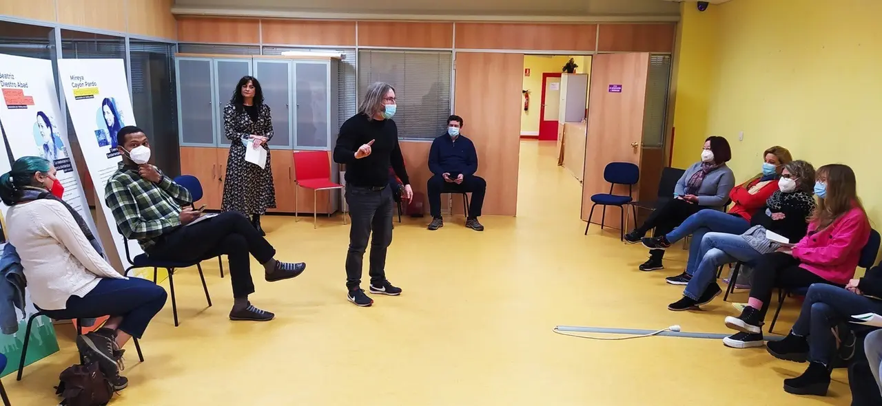 Los participantes de la Lanzadera de Empleo y Emprendimiento Solidario de Torrelavega han recibido durante tres días el taller 'Tierra Trágame', de manos del actor, director y dramaturgo cántabro, Fernando Rebanal, para mejorar las habilidades comunicativas en público y perfeccionar el lenguaje verbal y no verbal.