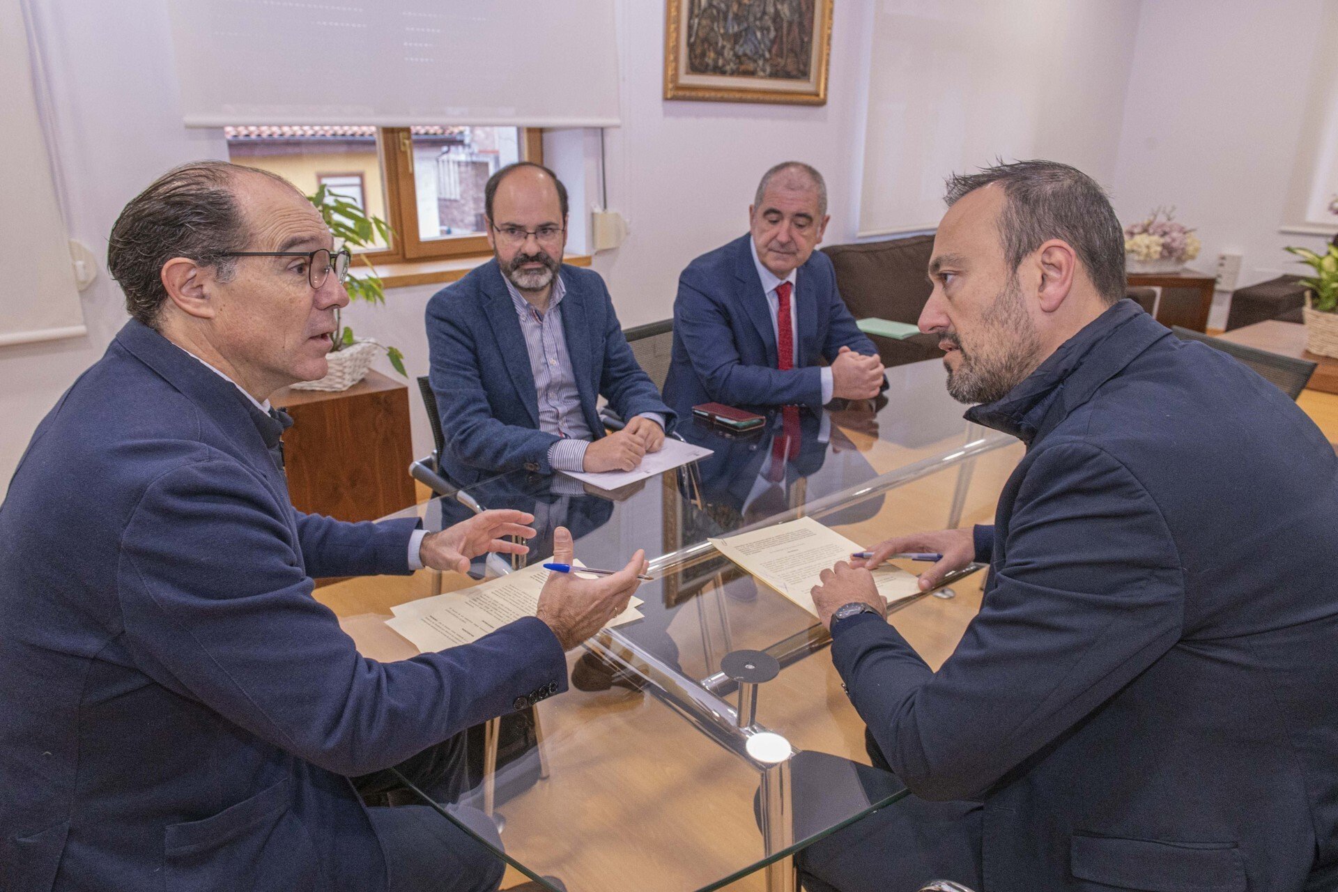 En la firma del convenio han estado presentes el concejal responsable del Matadero, José Luis Urraca, y el director de la instalación, Juan José Becerril.