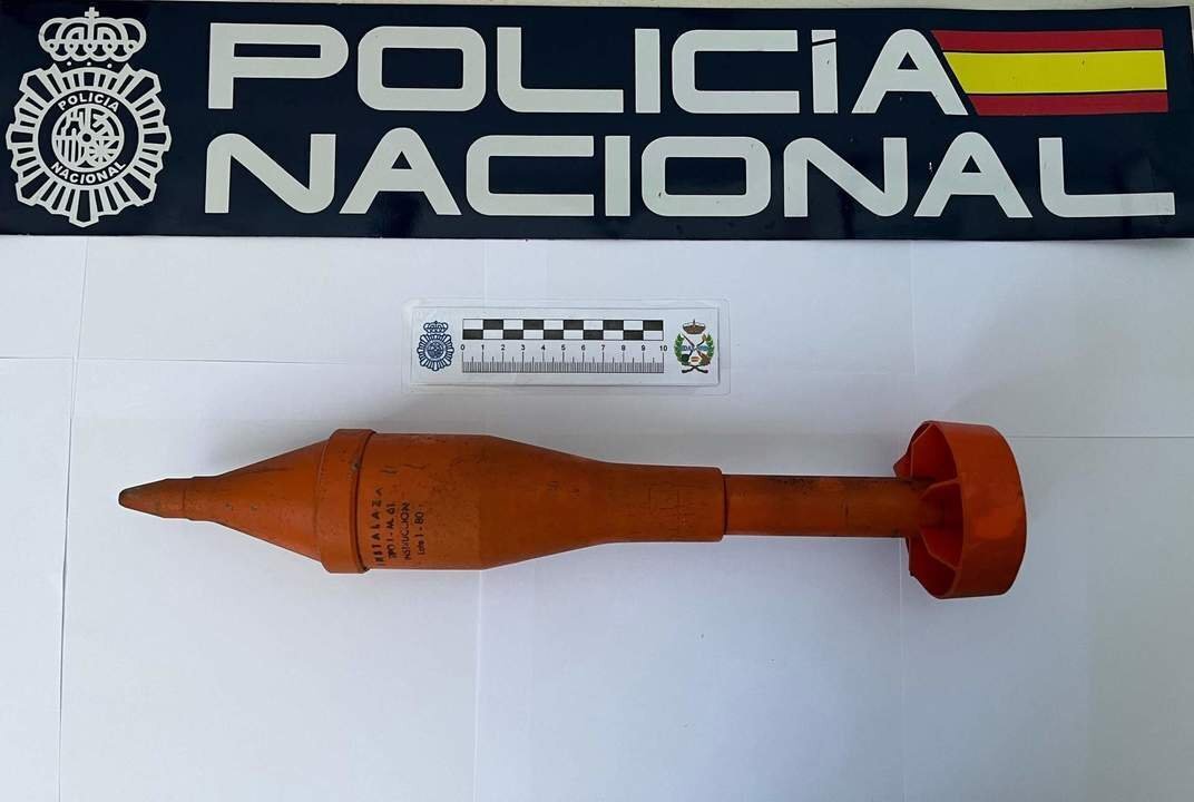 Se trata de una granada de fusil anticarro M-61 fabricada por Instalaza a finales del siglo pasado, que estaba en buen estado de conservación y carente de carga explosiva.